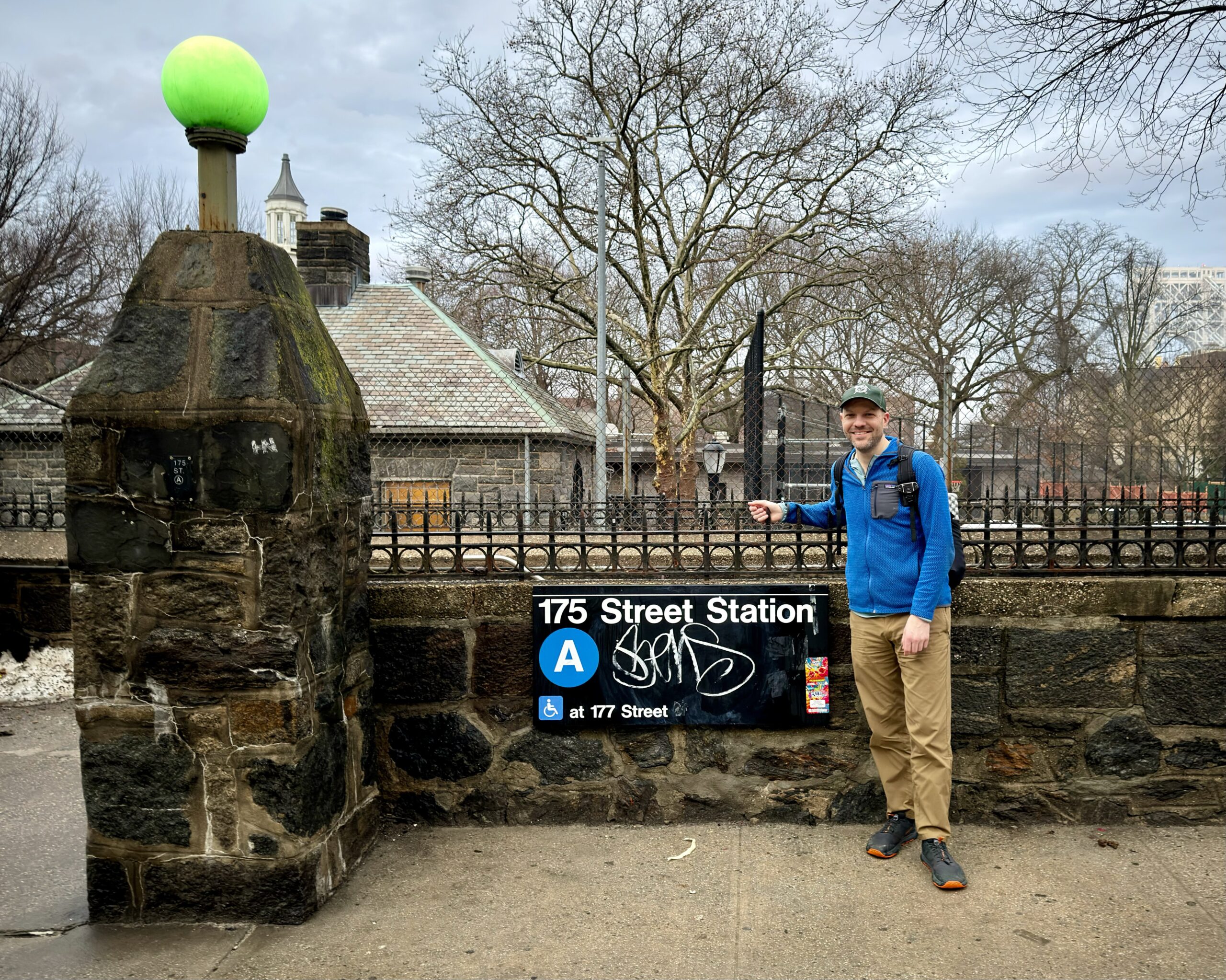We left our cars at State Line Lookout and rather than drive into Manhattan, we took an Uber and were dropped off at W 175th Street and Fort Washington Avenue.