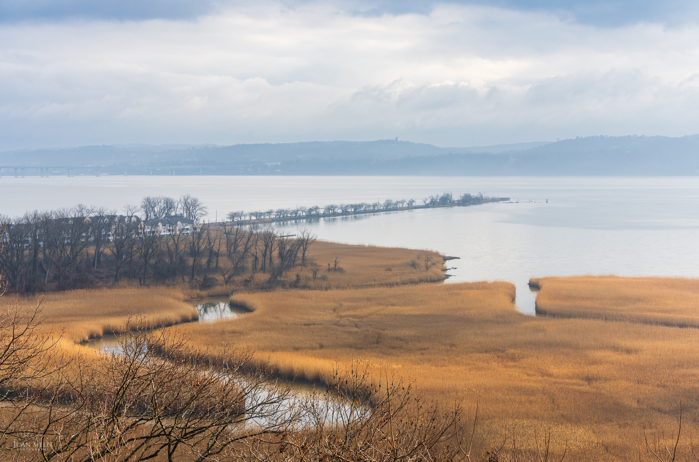 From there, the trail enters Tallman Mountain State Park for roughly two miles. As you head north, the views gradually open up over the Hudson River, Piermont Marsh, and Piermont Pier — a 4,000-foot structure that once served as the Erie Railroad terminus and a World War II embarkation point for 500,000 troops headed to Europe.