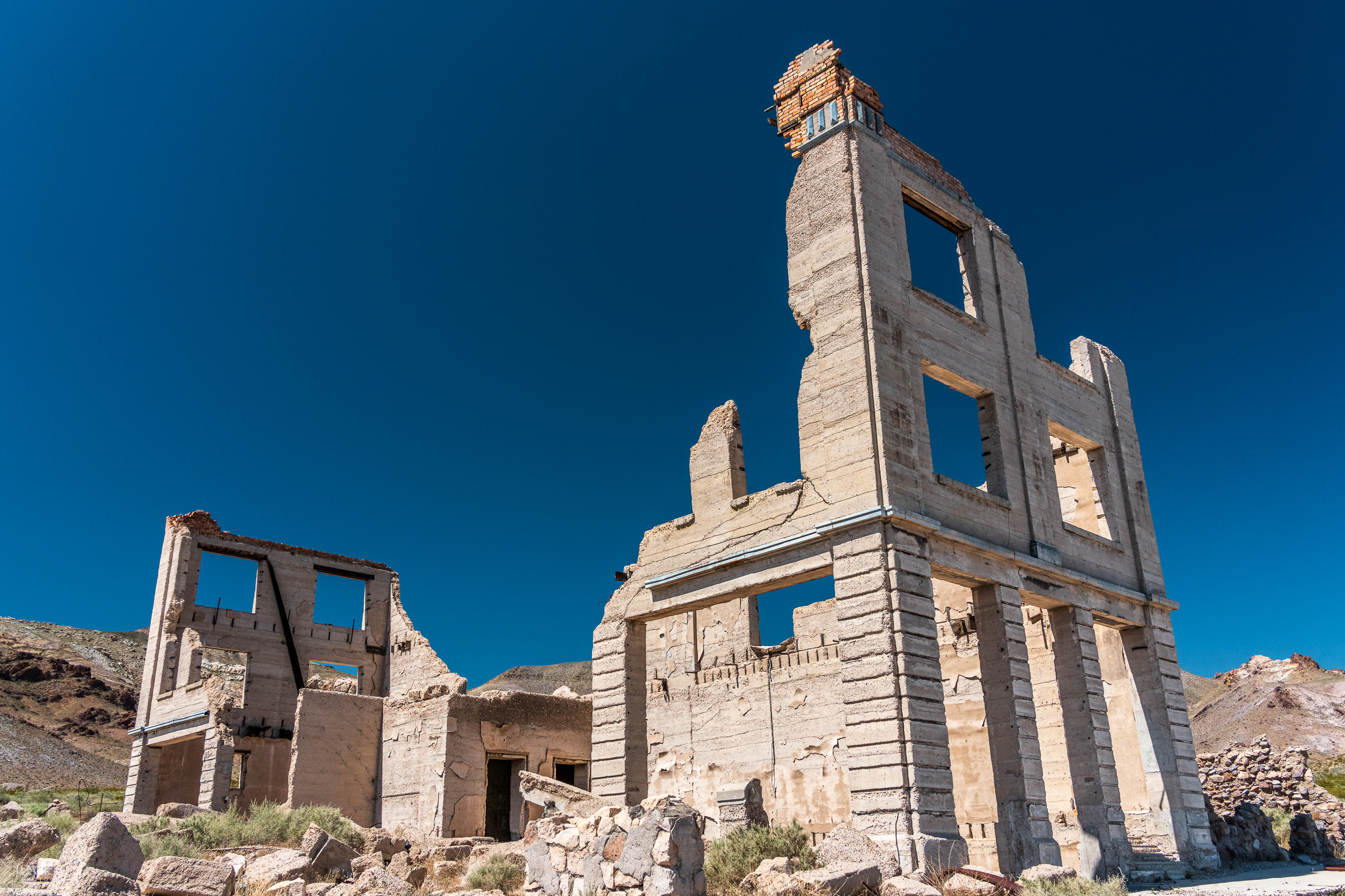 Just outside of Death Valley is the ghost town of Rhyolite, Nevada. The town sprang up almost overnight during the 1905 Bullfrog gold rush, but by the early 1910s it was effectively abandoned.