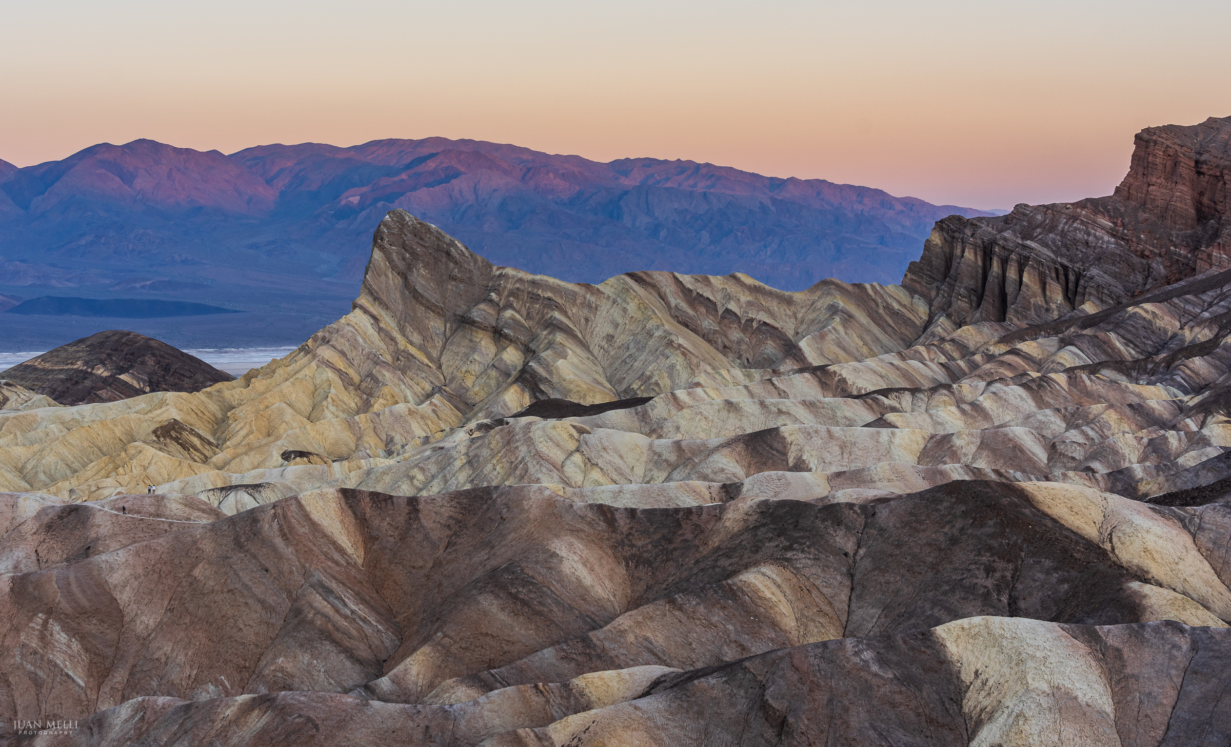The eroded badlands at Zabriskie Point are a great spot to catch the sunrise. With the sun catching the Panamints in the distance first, then harshly lighting up the foreground, it can be a challenge to photograph the quickly changing scene. The variety of compositions is endless and it’s a real delight to shoot the scene.